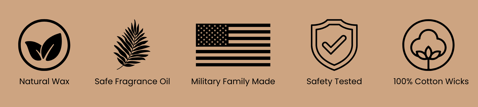 We’re a military family hand-pouring every batch with care in the USA. Our candle formulas are third-party tested for safety, so you can feel confident about what you’re lighting in your home.